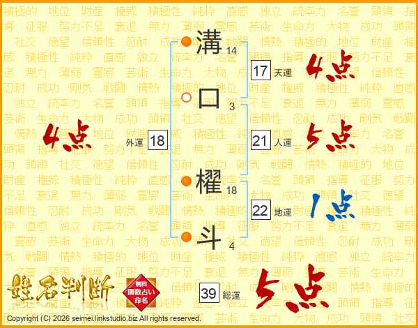 溝口櫂斗さんの総運は39画の5点!