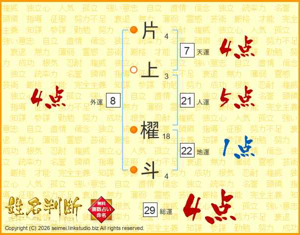 片上櫂斗さんの総運は29画の4点!