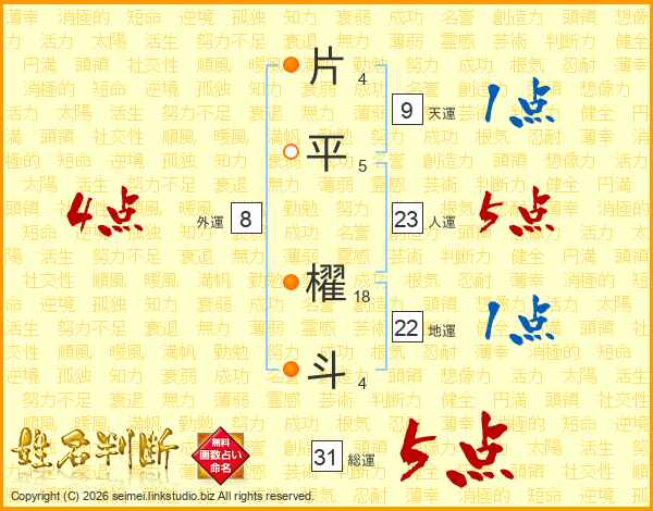片(4画)平(5画) 櫂(18画)斗(4画)