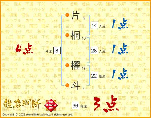片(4画)桐(10画) 櫂(18画)斗(4画)