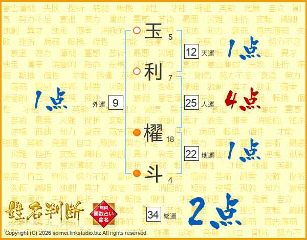 玉利櫂斗さんの総運は34画の2点!