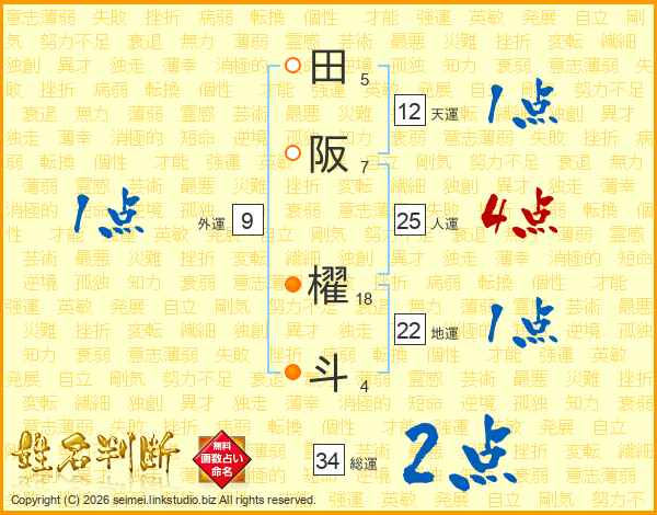 田阪櫂斗さんの総運は34画の2点!