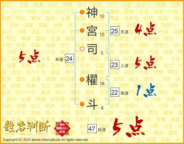 神宮司櫂斗さんの総運は47画の5点!