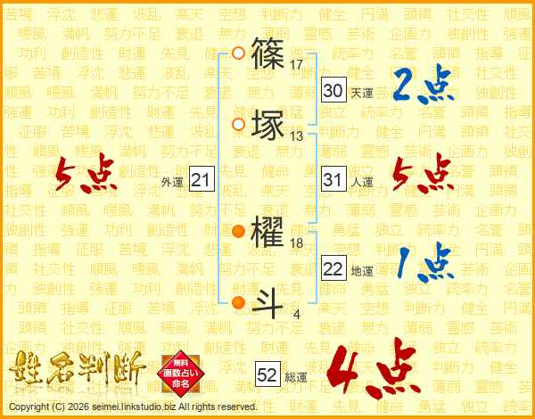 篠塚櫂斗さんの総運は52画の4点!