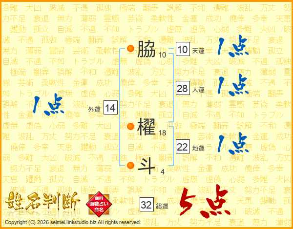 脇櫂斗さんの総運は32画の5点!