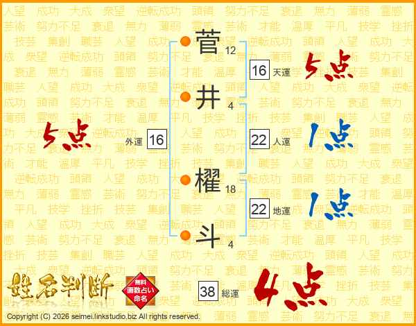 菅井櫂斗さんの総運は38画の4点!