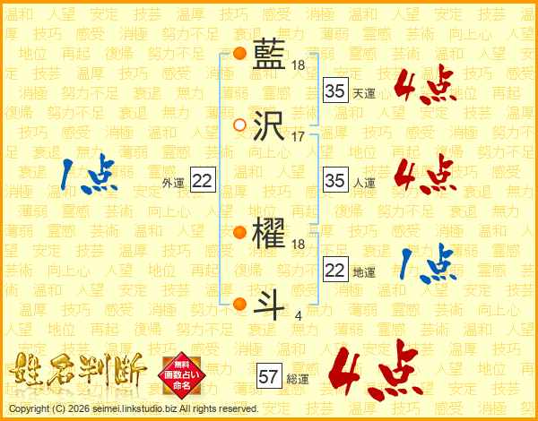 藍(18画)沢(17画) 櫂(18画)斗(4画)