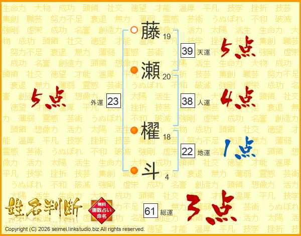 藤瀬櫂斗さんの総運は61画の3点!