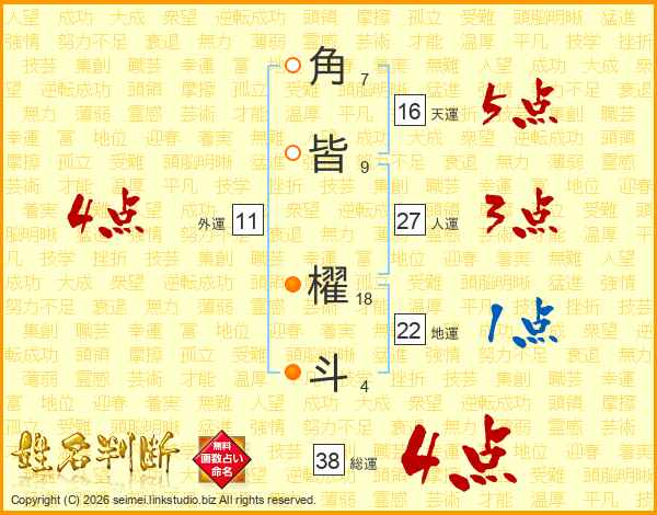 角(7画)皆(9画) 櫂(18画)斗(4画)
