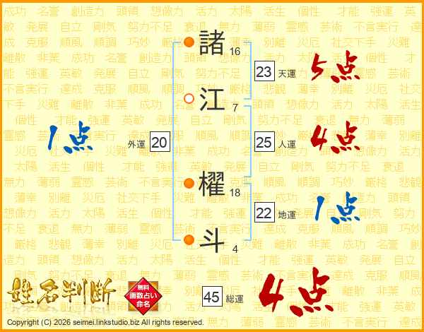 諸江櫂斗さんの総運は45画の4点!