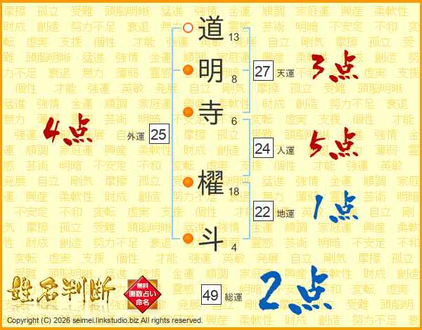 道明寺櫂斗さんの総運は49画の2点!