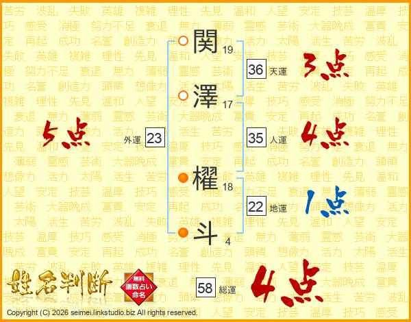 関澤櫂斗さんの総運は58画の4点!