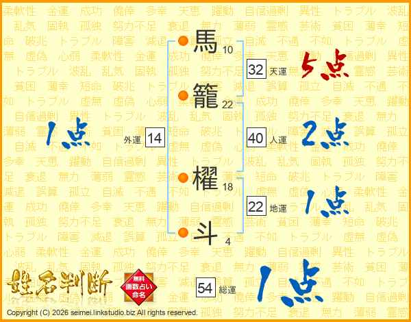 馬籠櫂斗さんの総運は54画の1点!