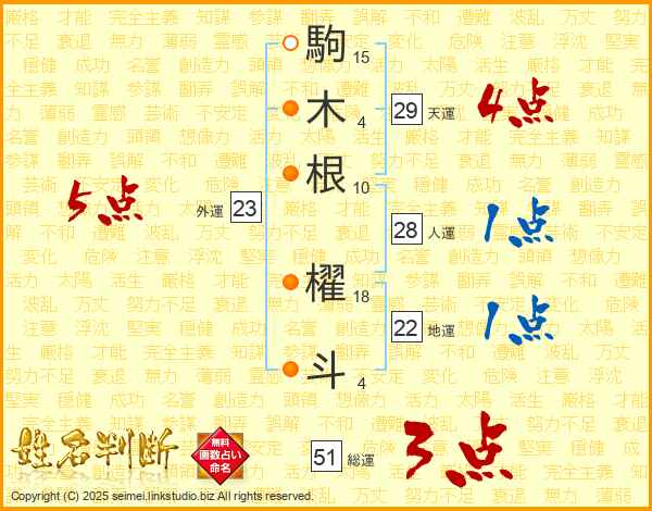 駒(15画)木(4画)根(10画) 櫂(18画)斗(4画)