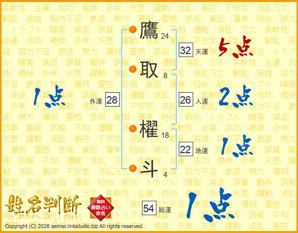 鷹取櫂斗さんの人運は26画の2点!
