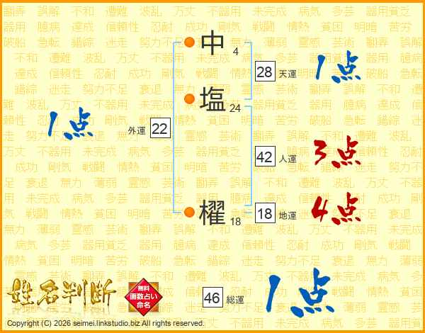中塩櫂さんの総運は46画の1点!
