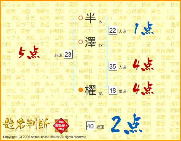 半澤櫂さんの総運は40画の2点!