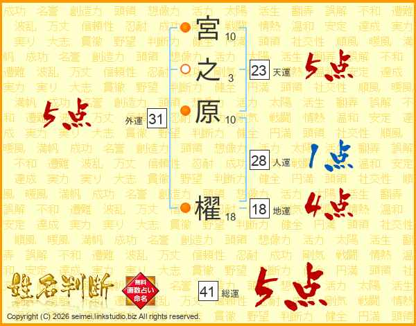 宮之原櫂さんの外運は31画の5点!