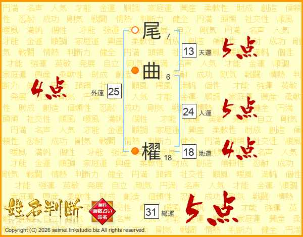 尾曲櫂さんの総運は31画の5点!