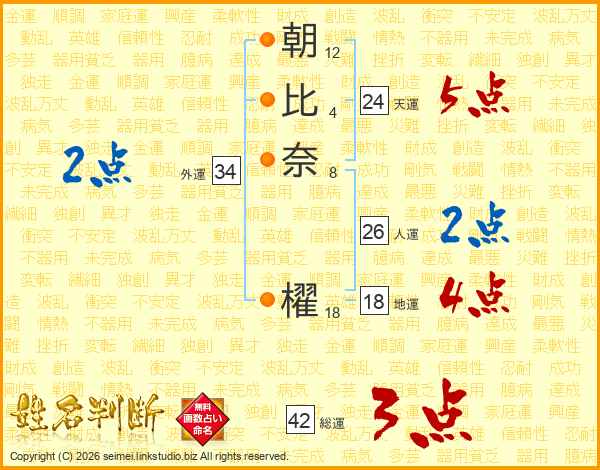 朝比奈櫂さんの総運は42画の3点!
