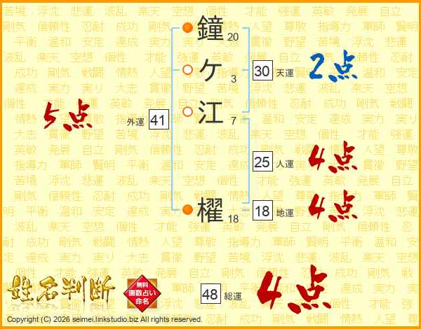 鐘ケ江櫂さんの総運は48画の4点!
