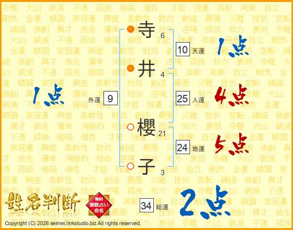 寺井櫻子さんの総運は34画の2点!