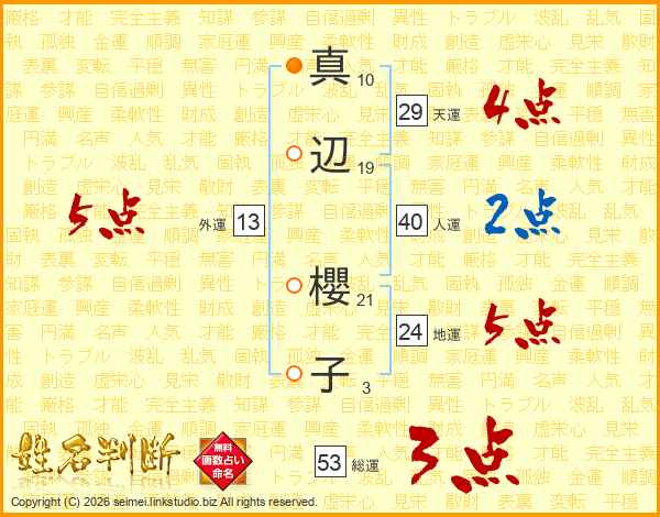 真辺櫻子さんの総運は53画の3点!