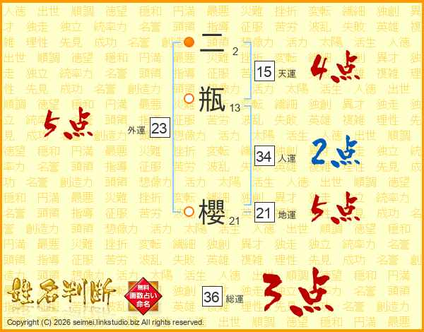 二瓶櫻さんの総運は36画の3点!