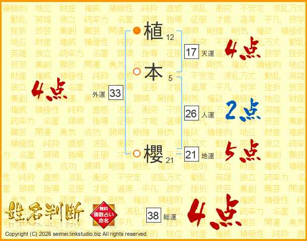 植本櫻さんの総運は38画の4点!