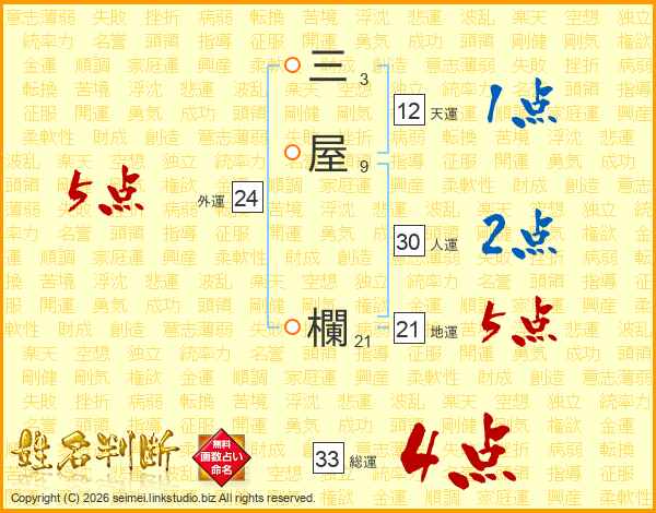 三屋欄さんの総運は33画の4点!