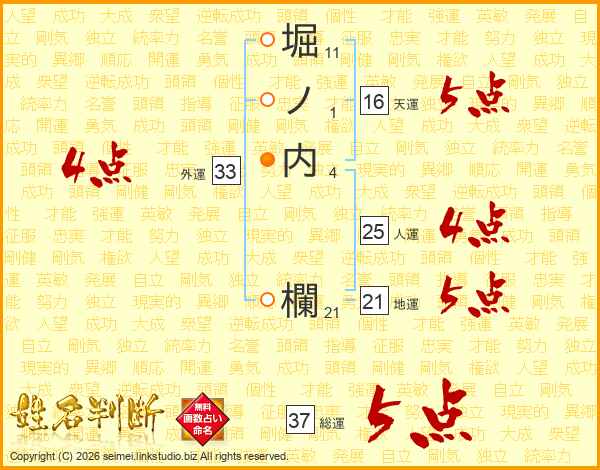 堀ノ内欄さんの総運は37画の5点!