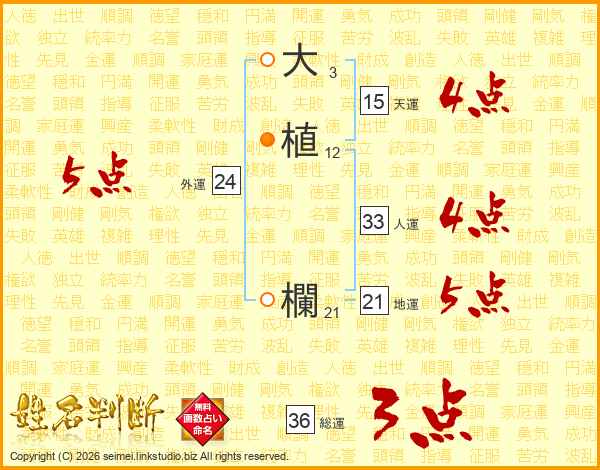 大植欄さんの総運は36画の3点!