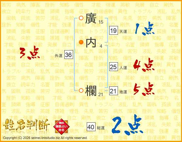廣内欄さんの地運は21画の5点!