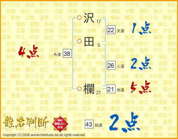 沢田欄さんの総運は43画の2点!