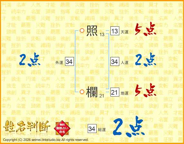 照欄さんの総運は34画の2点