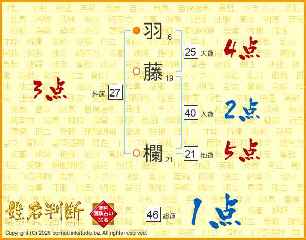 羽藤欄さんの総運は46画の1点!