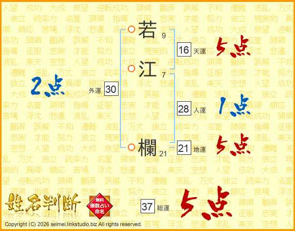 若江欄さんの総運は37画の5点!