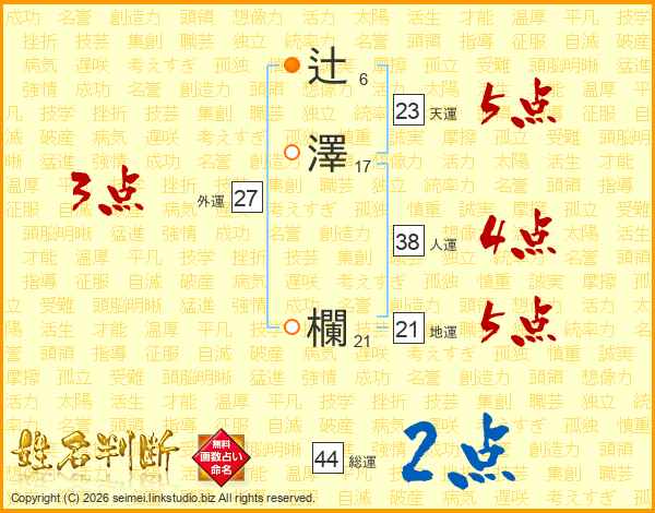 辻澤欄さんの総運は44画の2点!