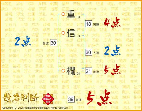 重信欄さんの総運は39画の5点!