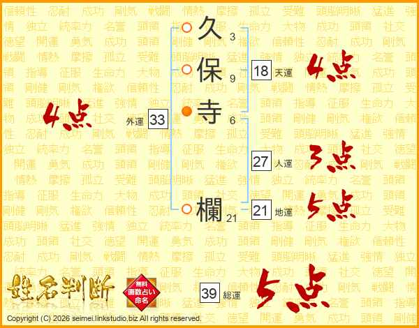 久保寺欄さんの人運は27画の3点