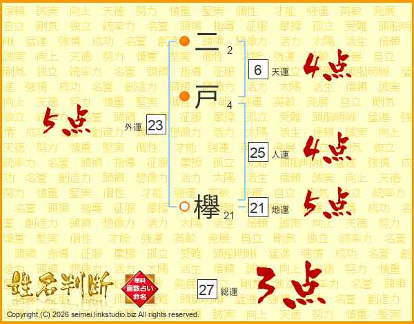 二戸欅さんの総運は27画の3点!