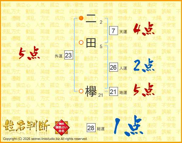 二田欅さんの天運は7画の4点!
