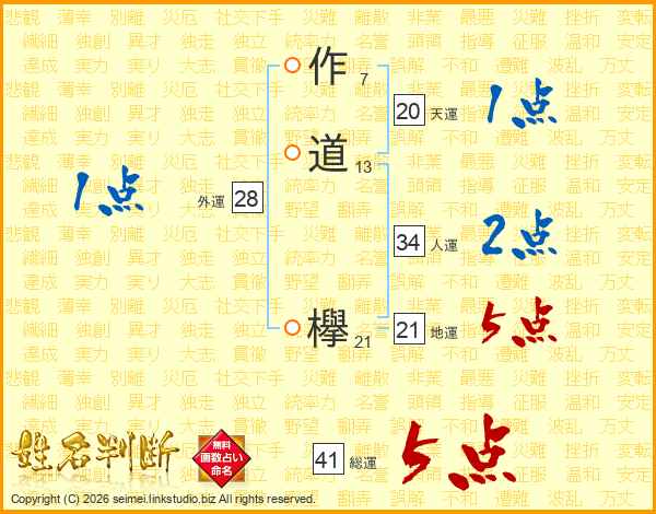 作道欅さんの総運は41画の5点!