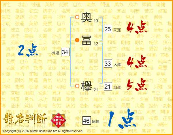 奥冨欅さんの総運は46画の1点!
