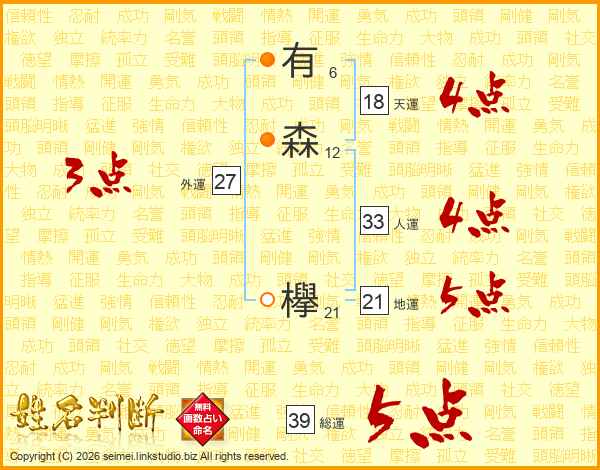 有森欅さんの総運は39画の5点!