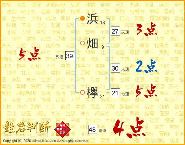 浜畑欅さんの外運は39画の5点!