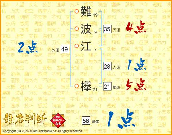 難波江欅さんの総運は56画の1点!