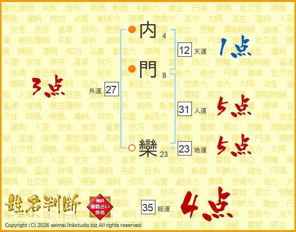 内門欒さんの総運は35画の4点!