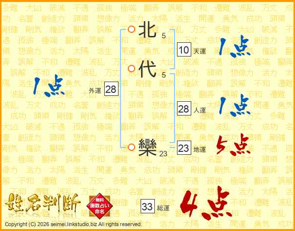 北代欒さんの総運は33画の4点!