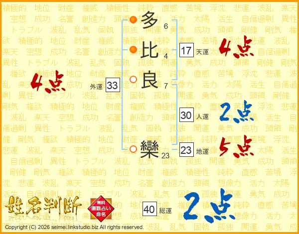 多比良欒さんの総運は40画の2点!